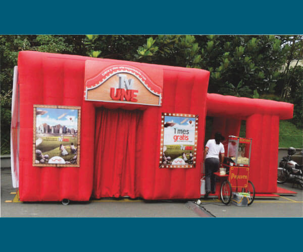Stand InflableEsta innovadora línea le dará la oportunidad de tener un stand a bajo costo y de rápido armado. Diseñe su espacio de manera única, llamando la atención de todos en sus eventos y lleve sus tiendas a cualquier lado de una manera práctica.